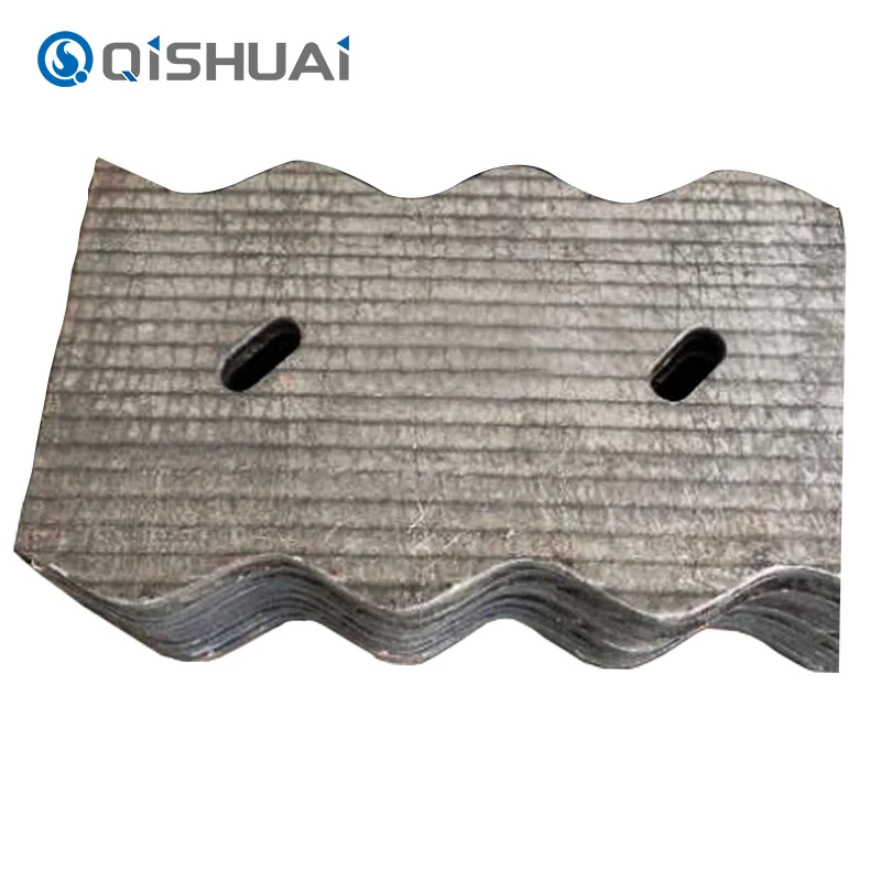 Die Verschleißfestigkeit von Brecherauskleidungen, die aus der Verschleißplatte von Shandong Qishuai bestehen, beträgt das 10- bis 30-fache der von gewöhnlichen Stahlplatten, deren Abnutzung und Austausch nur kurze Zeit in Anspruch nimmt.